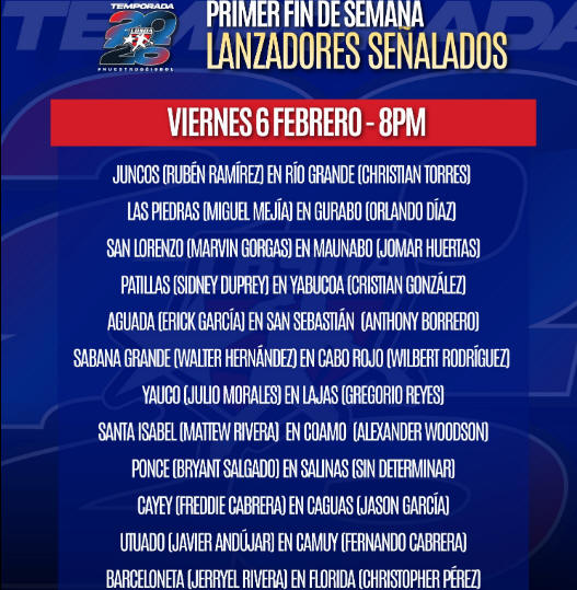La jornada del viernes, tiene partidos suspendidos. Los partidos de la Sección Metro, además de Juncos en Rio Grande, Utuado y Camuy, además de los partidos de los Fundadores de Añasco.